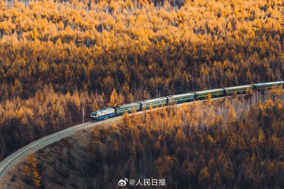 金秋十月,內(nèi)蒙古呼倫貝爾遼闊的藍(lán)天白云下,一輛列車(chē)穿行在大興安嶺的密林之中。