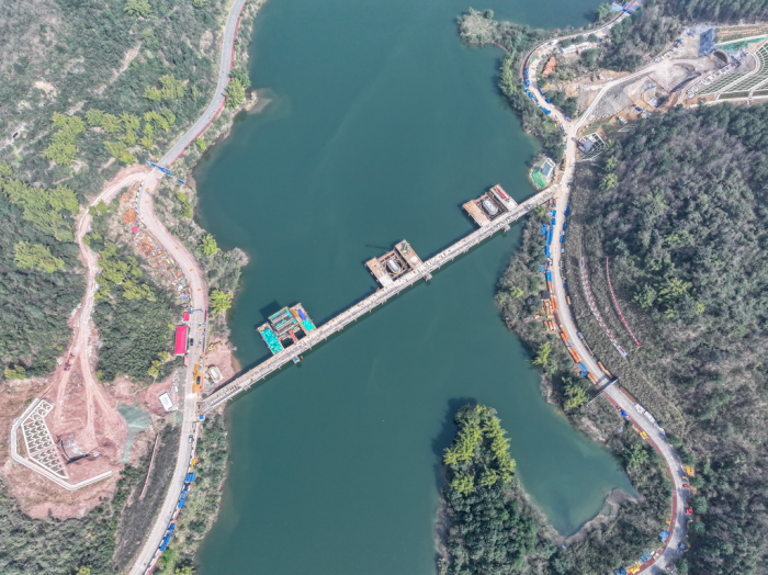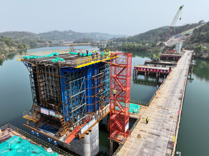 圖為位于重慶市銅梁區(qū)的成渝中線高鐵玄天湖大橋建設(shè)現(xiàn)場。