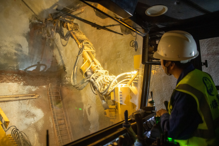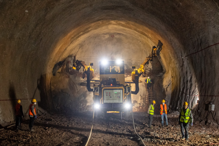 圖為位于重慶市大足區(qū)的成渝中線高鐵劉三寨隧道建設(shè)現(xiàn)場,工作人員在操作工程機(jī)械進(jìn)行施工作業(yè)。