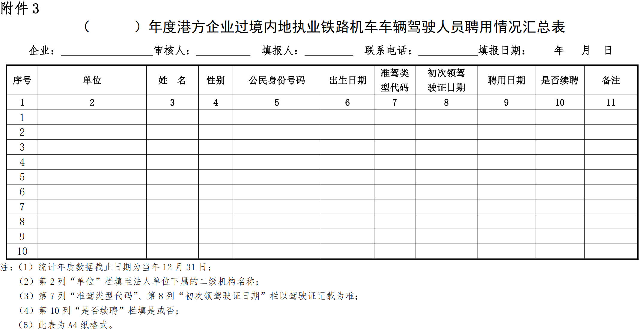 3.港方企業過境內地執業鐵路機車車輛駕駛人員聘用情況匯總表