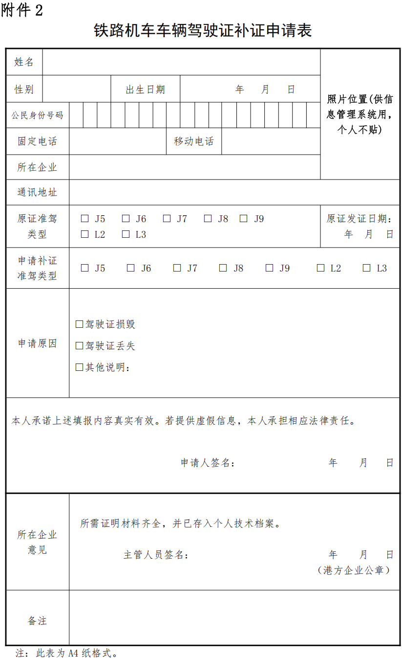 第十四條 申請補發駕駛證的,應當按照信息管理系統要求提交《鐵路機車車輛駕駛證補證申請表》(附件2)。