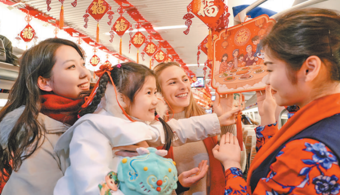 在北京西站開往鄭州東站的G97次列車上,中國鐵路鄭州局集團(tuán)公司工作人員組織各式“迎新春”特色活動,讓乘客在旅途中感受春節(jié)的美好氛圍。