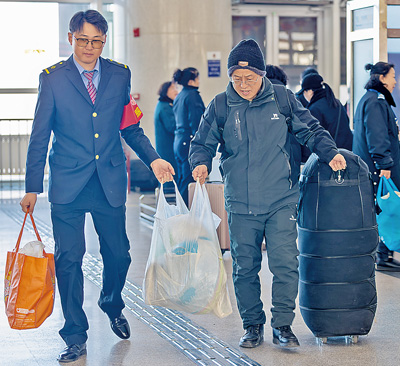 中國鐵路呼和浩特局集團公司鄂爾多斯車務段工作人員為旅客提供貼心服務。
