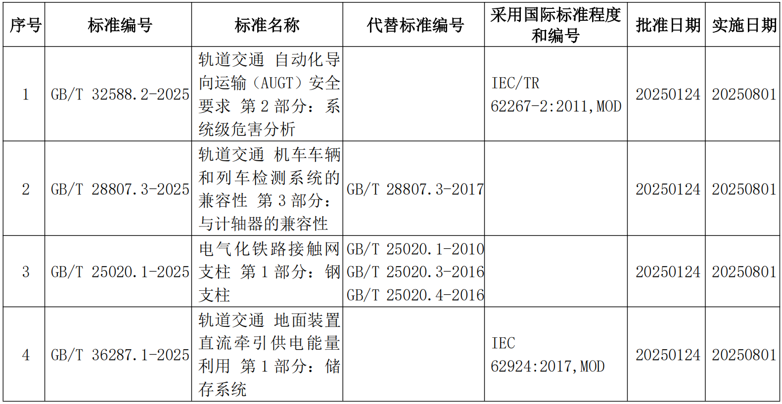 《軌道交通 自動化導(dǎo)向運輸(AUGT)安全要求 第2部分:系統(tǒng)級危害分析》等4項鐵路國家標準正式發(fā)布