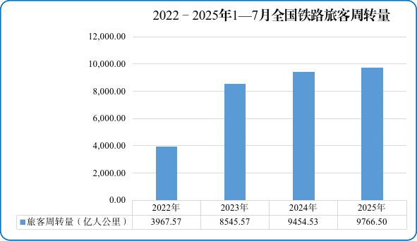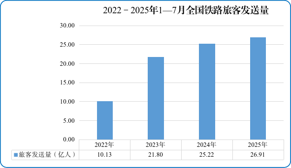 圖1 2022—2025年1—7月全國鐵路旅客發送量